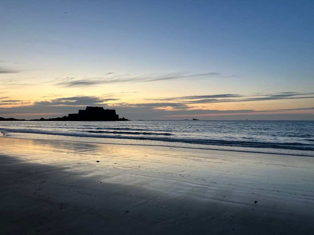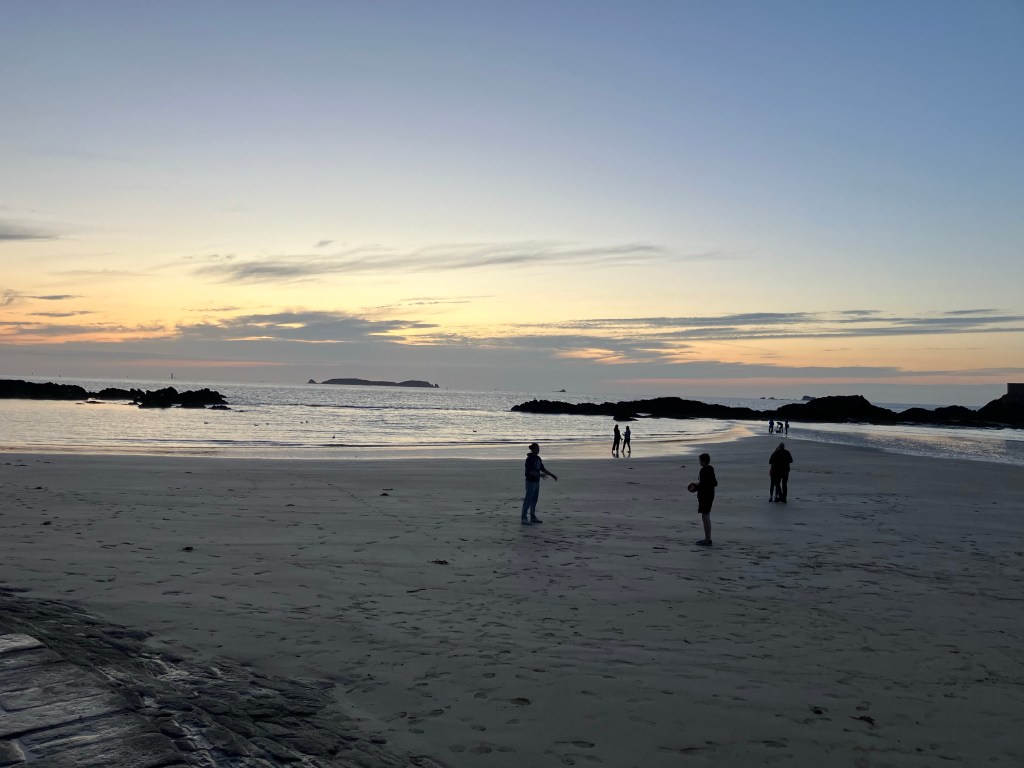 Saint Malo is a town in Brittany, western France. Its main attraction is a HUGE beach, but it also has an interesting walled town (most of which was bombed during the second world war, but which was rebuilt as crepieries and ice cream parlours). It’s far enough north that we don’t have to worry about the wildfires that have harried southern France in recent years, but the weather can be patchy. So far, we’ve been fairly lucky.